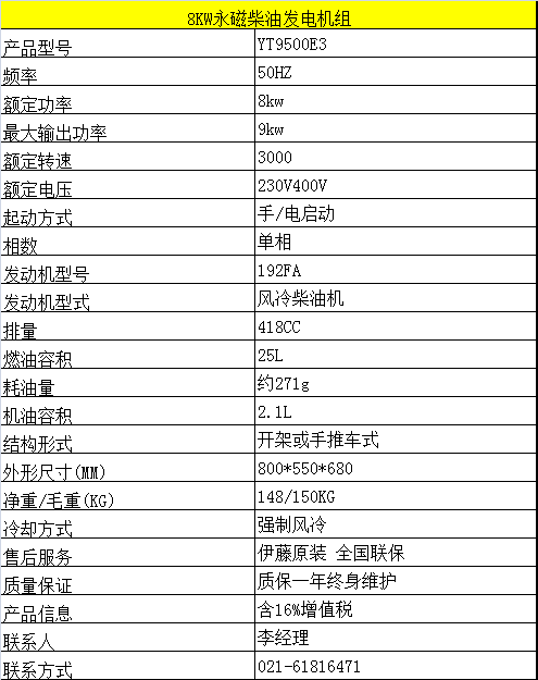8kw柴油发电机永磁电机户外应急伊藤动力YT9500E3
